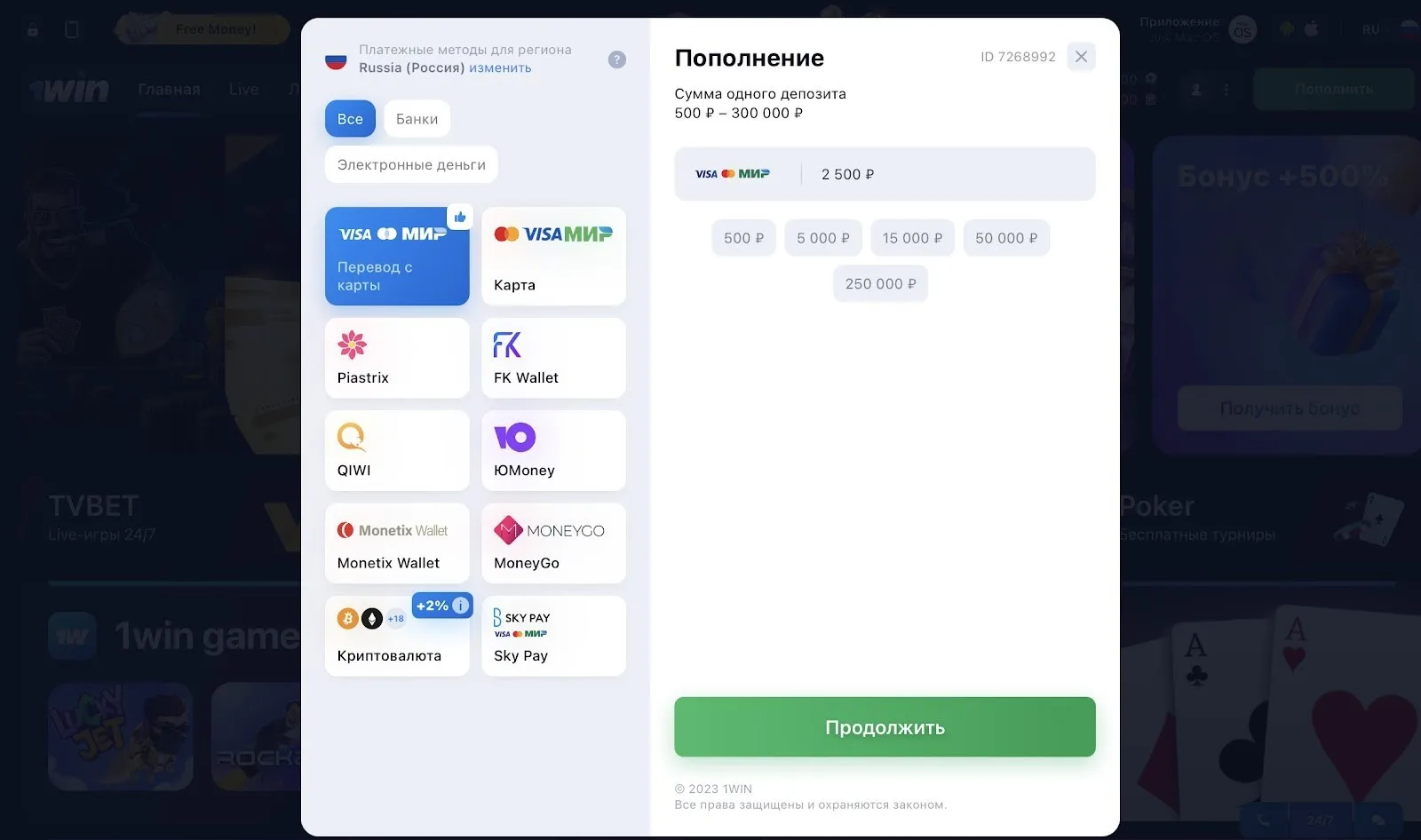 3. Как пополнить счет в БК Ван Вин?